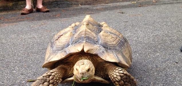 This strikes me as odd on so many levels. Why would this woman drive to someone’s house to see if they had found their missing tortoise? Was she coming to offer her sympathy or just curious? Am I mistaken or could a tortoise really move quick enough to make a break for freedom? And how could anything that big be lost? Does my neighborhood have an organization,and a Facebook page? If so shouldn’t someone have told me?